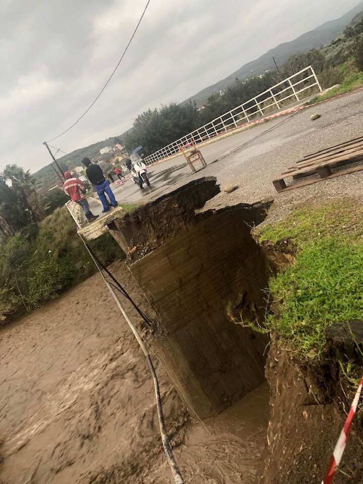 Κατολισθήσεις και καταστροφές στο οδικό δίκτυοΣε αρκετά σημεία έχουν καταγραφεί κατολισθήσεις και καταστροφές στο οδικό δίκτυο κυρίως των δήμων Χανίων και Πλατανιά.Σύμφωνα με πληροφορίες του cretapost, η πιο σημαντική είναι η καταστροφή της γέφυρας Συριλι στο δρόμο Ταυρωνίδη – Παλαιόχωρας στο ύψος της Νερατζιάς.Όπως φαίνεται και στις φωτογραφίες του δημάρχου Πλατανιά, Γιάννη Μαλανδράκη, η γέφυρα είναι σχεδόν πλήρως υποσκαμμένη με αποτέλεσμα να απαγορεύεται η διέλευση οχημάτων.Την ίδια ώρα αδύνατη είναι η μετακίνηση στο δρόμο Καρανου – Ορθουνι – Χλιαρό καθώς και ο δρόμος Φουρνέ – Λάκκοι ενώ παράλληλα τα Μεσκλα είναι τελείως αποκομμένα από Φουρνέ.Σοβαρό πρόβλημα όμως προκλήθηκε και στο δρόμο από τα Χανιά προς το Θέρισο.