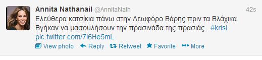 Στη λεωφόρο Βάρης βολτάρουν κατσίκια. Για του λόγου το αληθές, η Αννίτα Ναθαναήλ ανέβασε τη φωτογραφία που βλέπετε στον προσωπικό της λογαριασμό στο twitter.