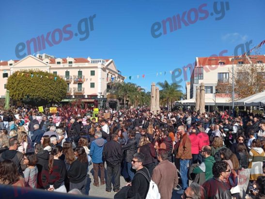 Δυναμική κινητοποίηση για τα Τέμπη πραγματοποιούν αυτή την ώρα χιλιάδες πολίτες στην κεντρική πλατεία Βαλιάνου στο Αργοστόλι.