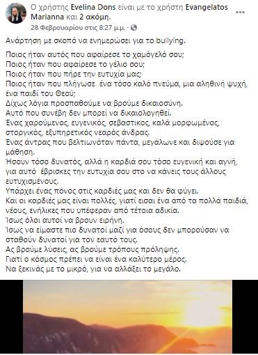 “Ανάρτηση με σκοπό να ενημερώσει για το bullying.