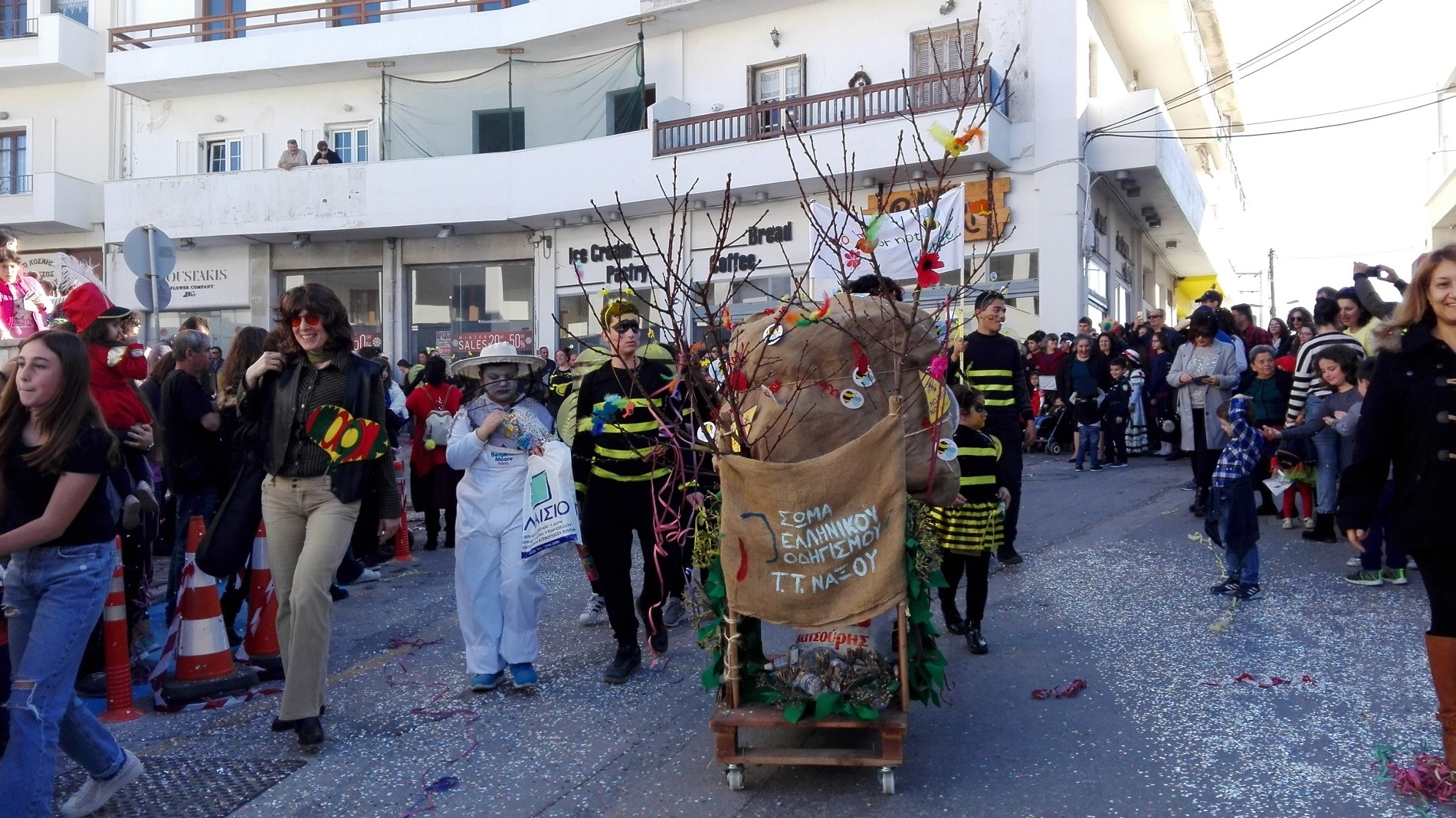 Με καλοκαιρινή ατμόσφαιρα , με τη συμμετοχή του περισσότερου κόσμου των τελευταίων χρόνων αλλά και με πολύ ανεβασμένο το κέφι των πληρωμάτων που συμμετείχαν, πραγματοποιήθηκε το απόγευμα της Κυριακής η καρναβαλική παρέλαση στην πόλη της Νάξου.