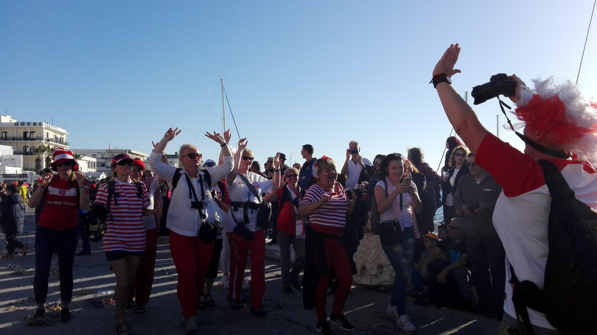 Παρά την καθυστέρηση που για μια ακόμη φορά σημειώθηκε για την έναρξη, ο κόσμος με φανερή τη διάθεση της συμμετοχής απολάμβανε τον περίπατο, το φαγητό ή τον καφέ του στα καταστήματα της παραλιακής οδού που ήταν κατάμεστα από πελάτες. Άλλωστε, πιο πολλοί από κάθε άλλη φορά, μικροί και μεγάλοι, είχαν ντυθεί ανάλογα, όπως και επιχειρηματίες και εργαζόμενοι καταστημάτων εστίασης.