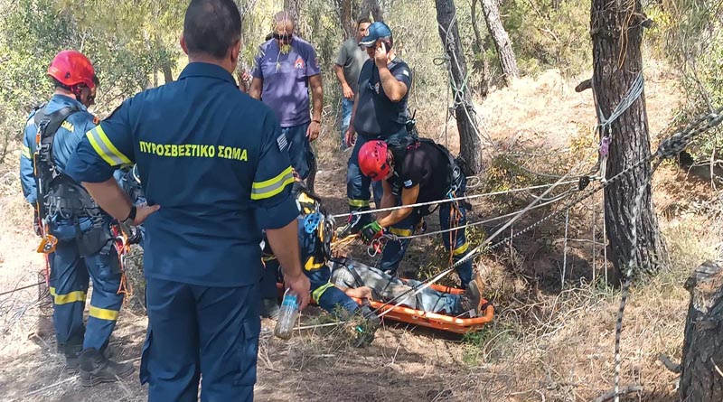 Σύμφωνα με την Πυροπροστασία Δασών Λευρεωτικής ο άνδρας απεγκλωβίστηκε τραυματισμένος έχοντας τις αισθήσεις του.