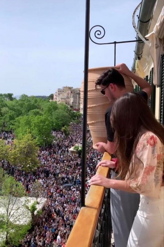 Χιλιάδες «μπότηδες» έπεσαν και φέτος από τα ψηλά μπαλκόνια και τα παραθυρόφυλλα, στην καρδιά της Παλιάς Πόλης της Κέρκυρας για να διώξουν τα «μολύσματα» και μοχθηρά πνεύματα από το νησί, αλλά και να θυμίσουν την Ανάσταση του Κυρίου και την νίκη του έναντι του Άδη. Παρότι ο κόσμος ήταν πολύ λιγότερος σε σχέση με άλλες χρονιές που στο νησί “πνίγεται” από χιλιάδες επισκέπτες, ο κόσμος που έσπευσε να παρακολουθήσει το έθιμο των «μπότηδων» ήταν πολύς με αποτέλεσμα να μην είναι εφικτό να τηρηθούν οι απαραίτητες αποστάσεις.