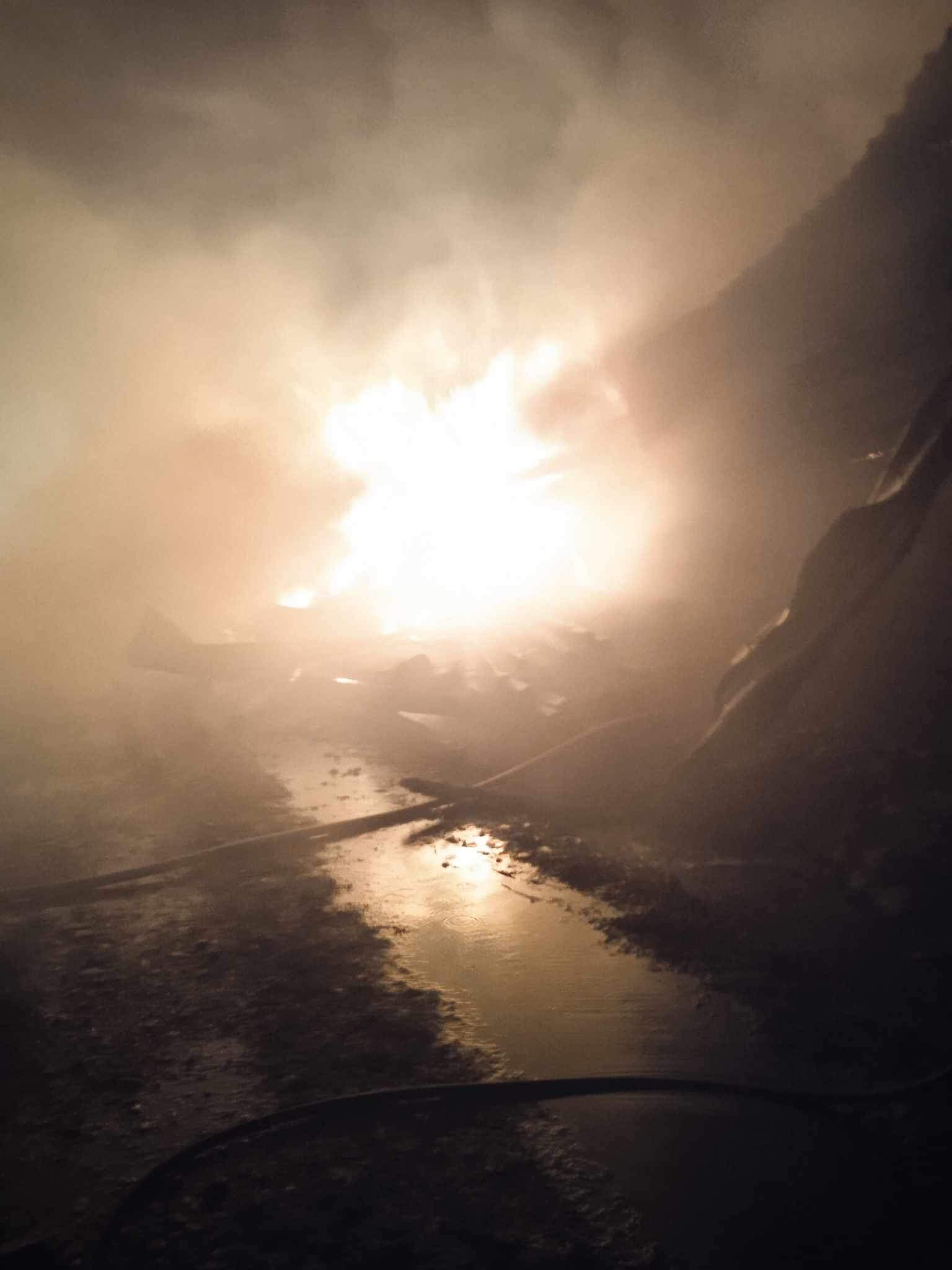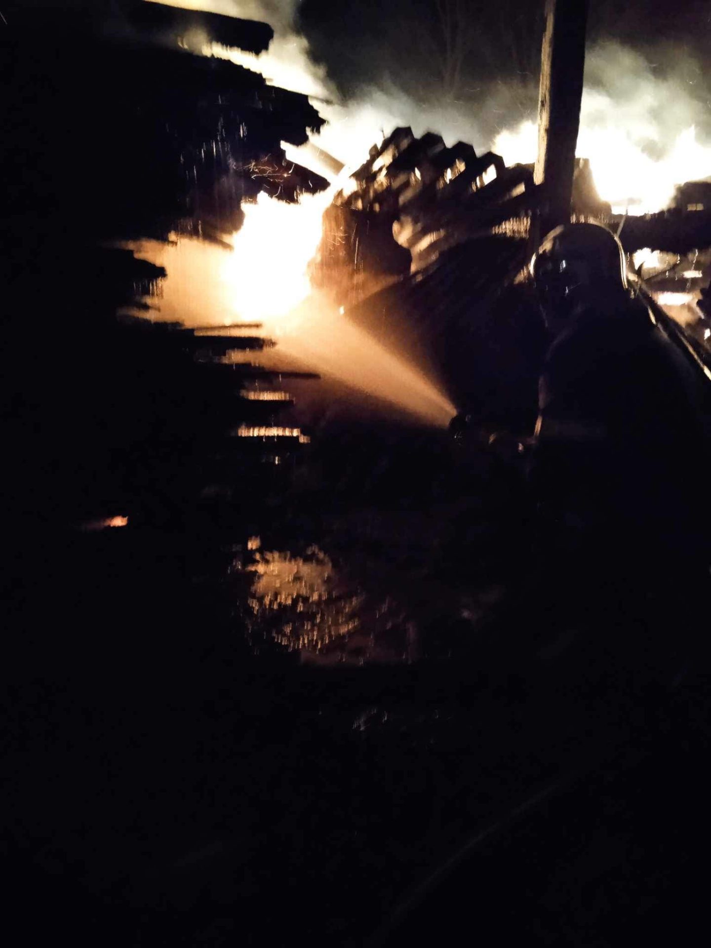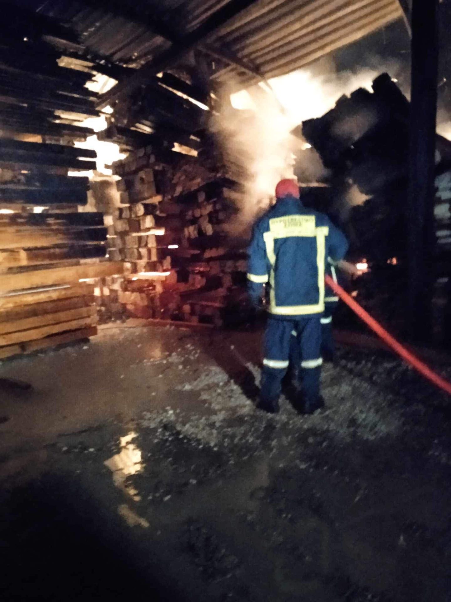 Η αποθήκη του εργοστασίου ξυλείας κάηκε ολοσχερώς, σύμφωνα με την ΕΡΤ.