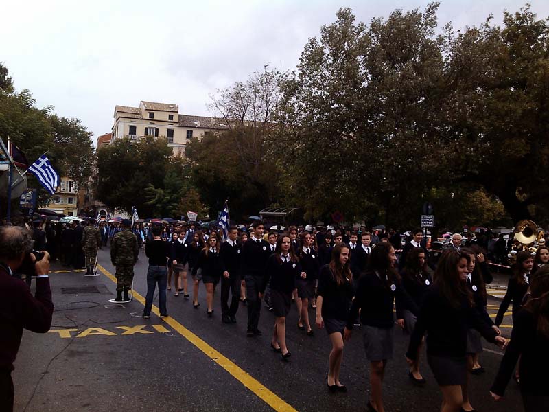 Μικρές ομάδες πολιτών αποφάσισαν να φωνάξουν συνθήματα στο σημείο της παρέλασης, ως αντίδραση στα βάρβαρα οικονομικά μέτρα. Ο περισσότερος κόσμος που προσήλθε, περιορισμένος σχετικά λόγω των κακών καιρικών συνθηκών, παρακολούθησε τους μαθητές, τις φιλαρμονικές, τους πρόσκοπους και τα υπόλοιπα τμήματα να παρελαύνουν, ενώ η παρουσία επισήμων πάνω στη σχετική εξέδρα ήταν μικρότερη από κάθε άλλη φορά…