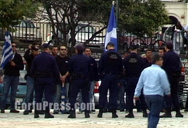 Μπροστά από τις δύο ομάδες είχαν παραταχθεί ισχυρές αστυνομικές δυνάμεις για να τους αποτρέψουν να πλησιάσουν στο χώρο της κατάθεσης στεφάνων, ενώ ένταση δημιουργήθηκε μεταξύ αστυνομικών και διαδηλωτών από τις αντιφασιστικές οργανώσεις, χωρίς ωστόσο να πάρει περαιτέρω έκταση.