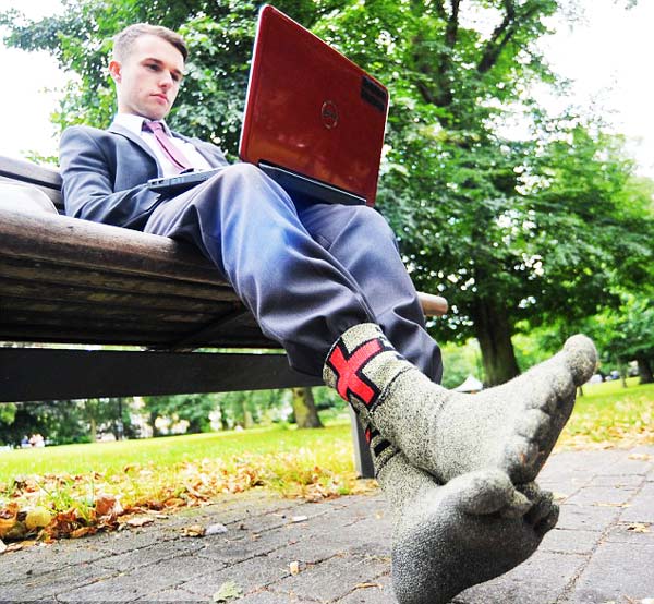 Αυτή η εξαιρετικά πρωτότυπη δημιουργία ανήκει σε μια ελβετική εταιρεία. Οι συγκεκριμένες κάλτσες, σύμφωνα με τους Ελβετούς, κάνουν όσους τις φορούν να νιώθουν ότι περπατούν ξυπόλητοι!