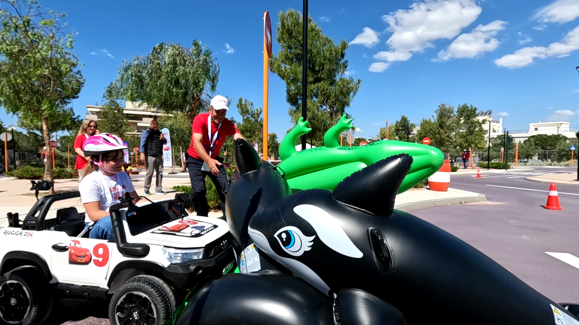 Το μεγάλο φινάλε ήταν ένας ολόκληρος τοίχος από φουσκωτά θηρία, δεινόσαυρους και καρχαρίες που οι οδηγοί έπρεπε να… διαπεράσουν υπό τους ήχους ταμ-ταμ και ζούγκλας. Το μοναδικό ατύχημα συνέβη εκτός πίστας και το… καρούμπαλο το ανέλαβε ο εθελοντής παιδίατρος της διοργάνωσης.