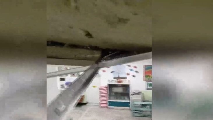 Στο βίντεο από τον περασμένο Φεβρουάριο, που δημοσιεύει η ΕΡΤ, φαίνεται η ψευδοροφή έτοιμη να πέσει, με τους γονείς καταγγέλλουν πως το κτίριο που στεγάζεται το σχολείο είναι παλιό, με κακοτεχνίες και πολλά προβλήματα.