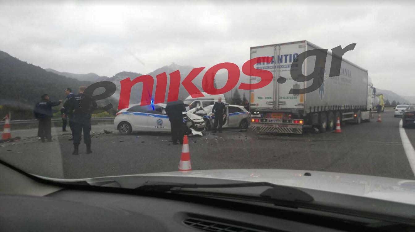 Ο οδηγός που κινούταν ανάποδα δεν σταμάτησε και έπεσε με μεγάλη ταχύτητα πάνω σε δυο περιπολικά και το φορτηγό. Ο οδηγός του αυτοκινήτου είναι νεκρός, ενώ ο οδηγός του φορτηγού έχει τραυματιστεί.