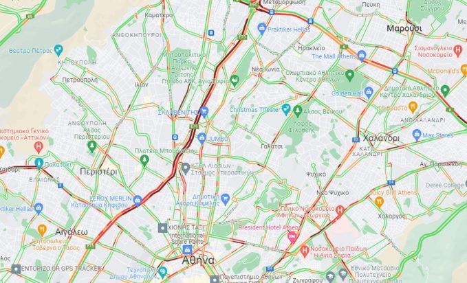 Οι δρόμοι με μποτιλιάρισμα σύμφωνα με την τελευταία ενημέρωση από την Τροχαία