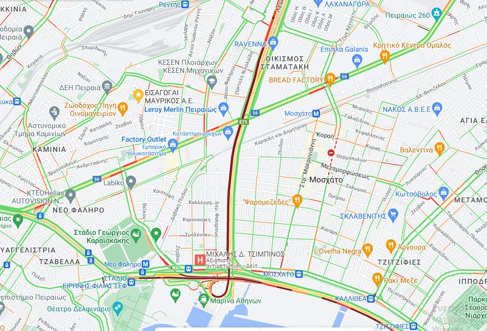 Για ακόμη μία ημέρα, επικρατεί μποτιλιάρισμα στον Κηφισό κυρίως στο ρεύμα ανόδου, ενώ στο κόκκινο είναι η αρχή της Ποσειδώνος και οι δρόμοι στο Δέλτα Φαλήρου όπου νωρίτερα ένα αυτοκίνητο τυλίχθηκε στις φλόγες.