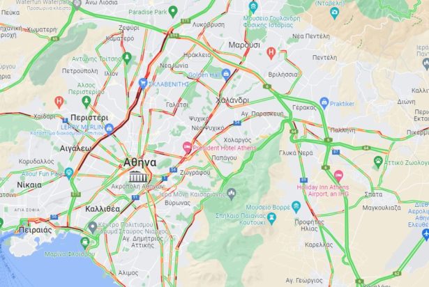 Αυξημένη είναι η κίνηση στην Πέτρου Ράλλη, στην Λ. Αλεξάνδρας, στην Λ. Μεσογείων, στα δύο ρεύματα της Λ. Κηφισίας, στην Βασιλέως Κωνσταντίνου, την άνοδο της Συγγρού, την Λ. Ηλιουπόλεως και την Θηβών. Στην Κηφισίας στο ύψος του Γηροκομείου είχε συμβεί νωρίτερα τροχαίο με αποτέλεσμα να επιβαρυνθεί η κυκλοφορία.