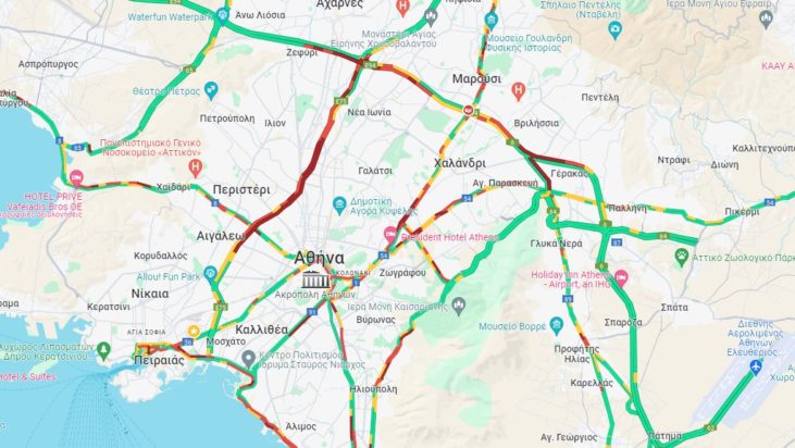 Προβλήματα καταγράφονται και στην Μεσογείων, αλλά και στην Λεωφόρο Ποσειδώνος τμηματικά στο ρεύμα προς Πειραιά.
