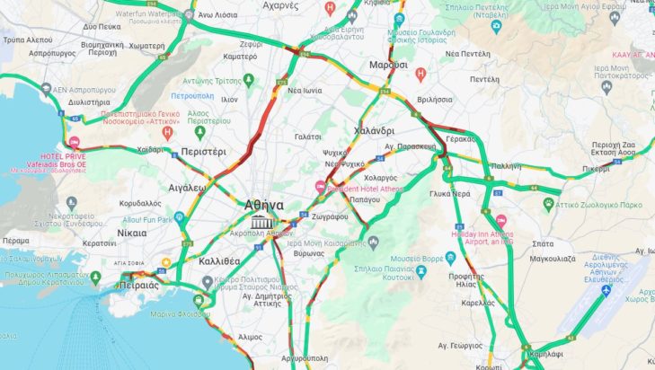10΄-15΄από κόμβο Ανθούσας έως κόμβο Κηφισίας,