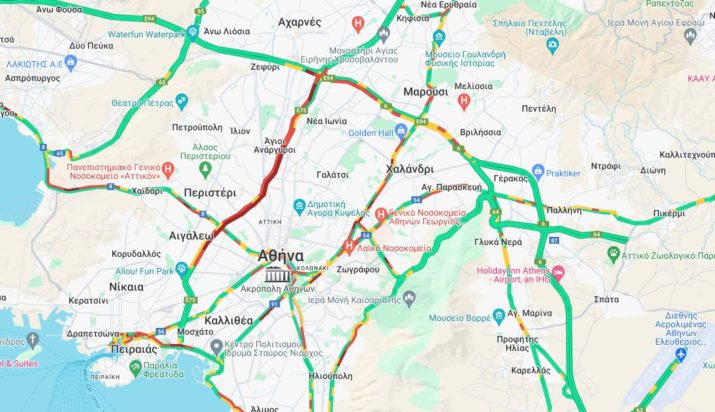 Παρασκευή σήμερα και η κίνηση κάνει «πάρτι» σε ορισμένους δρόμους της Αττικής. Στο «κόκκινο» βρίσκονται η έξοδος της Εθνικής Οδού Αθηνών – Κορίνθου, στην Λ. Αθηνών και στην έξοδο της Αθηνών – Λαμίας στο ύψος της Αχαρνών.