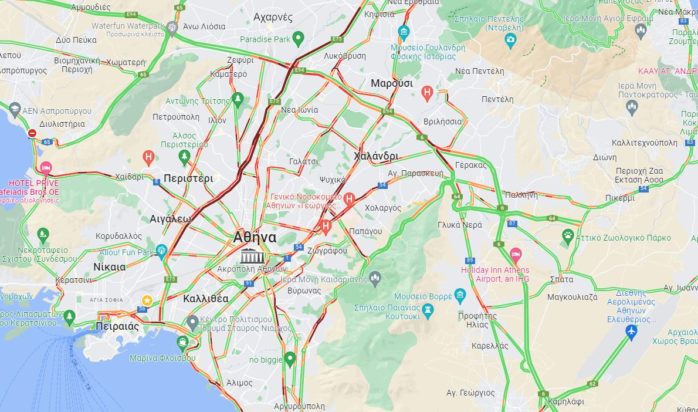 Προβλήματα καταγράφονται και στην έξοδο της Εθνικής Οδού Αθηνών – Κορίνθου, αλλά και στους δρόμους γύρω από το λιμάνι του Πειραιά.