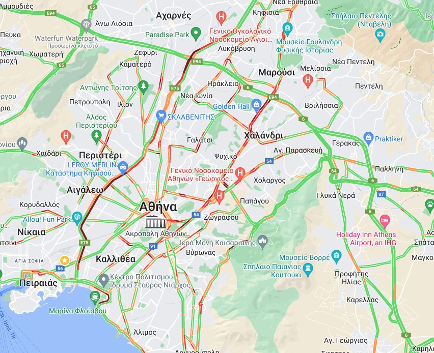 Προβλήματα αντιμετωπίζουν οι οδηγοί που κινούνται στη Λεωφόρο Κηφισού τόσο στην άνοδο όσο και την κάθοδο αλλά και όσοι κινούνται στην κάθοδο της Λεωφόρου Βασιλίσσης Σοφίας, στην Βασιλέως Κωνσταντίνου και την άνοδο της Κηφισίας.