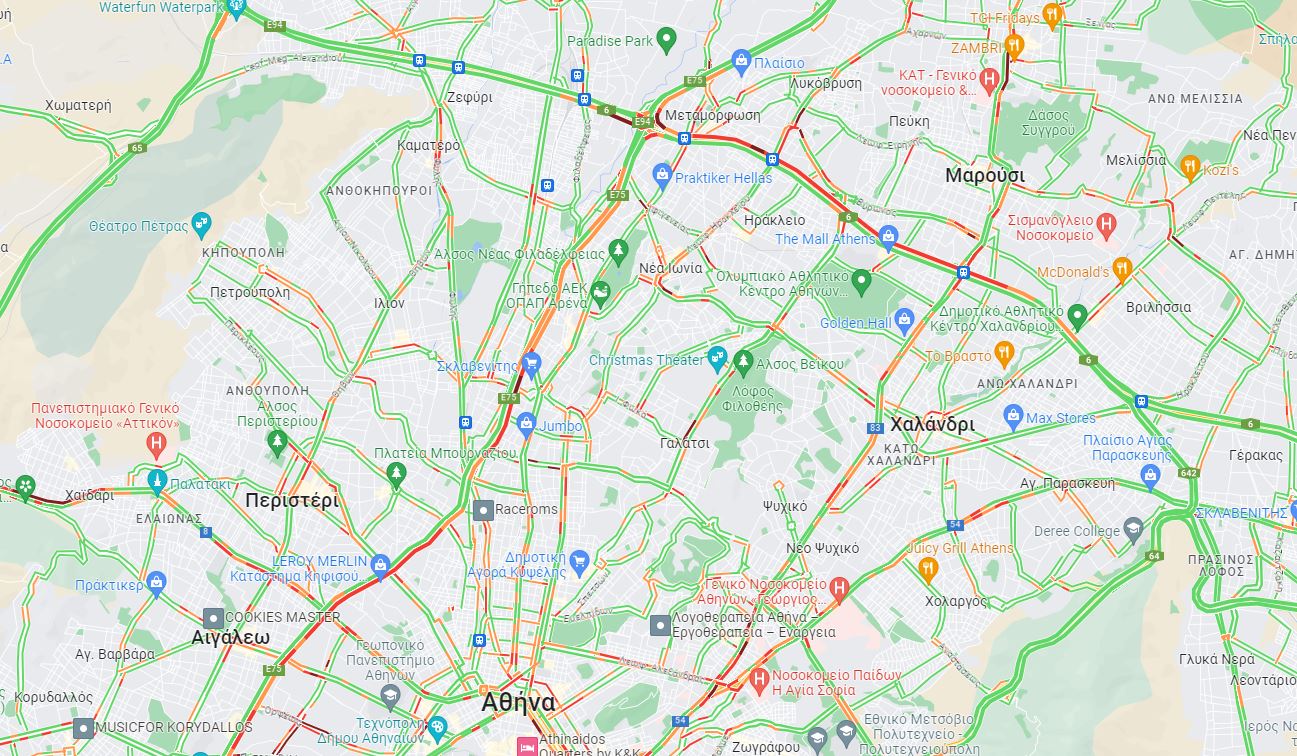 Καθυστερήσεις στο ρεύμα προς Ελευσίνα άνω των 30΄ από τον κόμβο Πεντέλης έως την έξοδο για Λαμία.