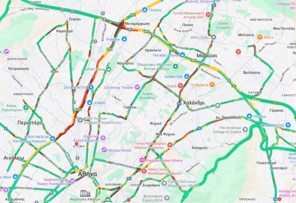 Παράλληλα, μποτιλιάρισμα έχει στην Λεωφόρο Σχιστού, στην περιφερειακή Αιγάλεω, στην Εθνικής Αντιστάσεως, αλλά και στην Αθηνών – Λαμίας.