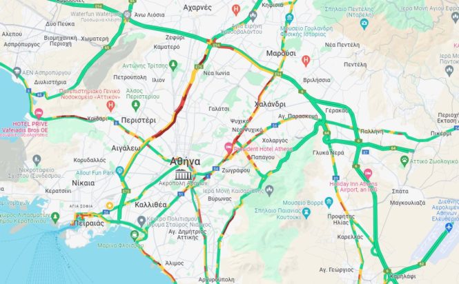 Αυξημένη είναι η κίνηση και σε Κατεχάκη, Ποσειδώνος, Βουλιαγμένης, Ηλιουπόλεως, Πέτρου Ράλλη και Αθηνών.