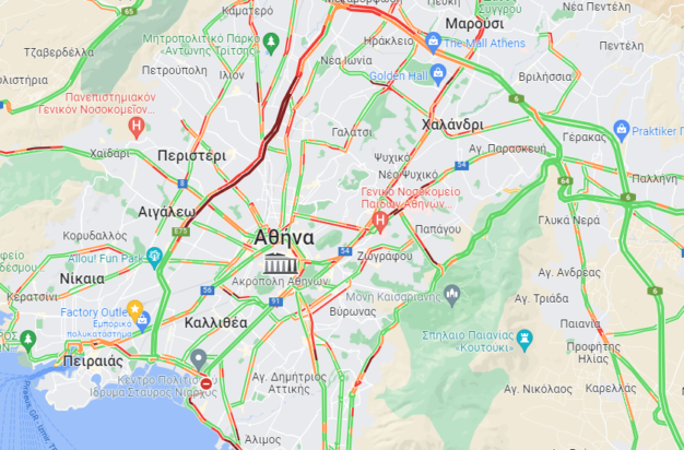 Ιδιαίτερα αυξημένη είναι η  κίνηση σε Μεσογείων, Κατεχάκη, Λεωφόρο Συγγρού, Βασ. Σοφίας και Σταδίου.