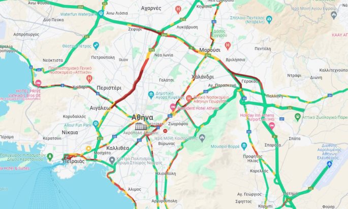 Προβλήματα καταγράφονται στους δρόμους γύρω από το λιμάνι του Πειραιά, αλλά και στην Λεωφόρο Ποσειδώνος στο ρεύμα προς Πειραιά.