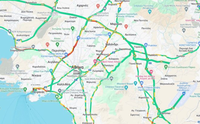 Καθυστερήσεις (5-10 λεπτών) στο ρεύμα προς Αεροδρόμιο από κόμβο Μεταμόρφωσης μέχρι κόμβο Κηφισίας.