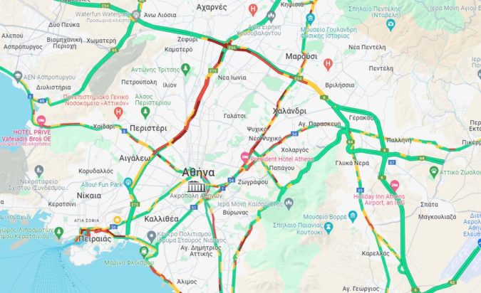 Καθυστερήσεις (10-15 λεπτά) καταγράφονται στο ρεύμα προς Αεροδρόμιο από τον κόμβο Μεταμόρφωσης μέχρι τον κόμβο Κηφισίας.