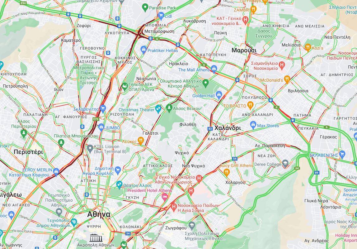 Δείτε εδώ live την κίνηση στους δρόμους της Αθήνας