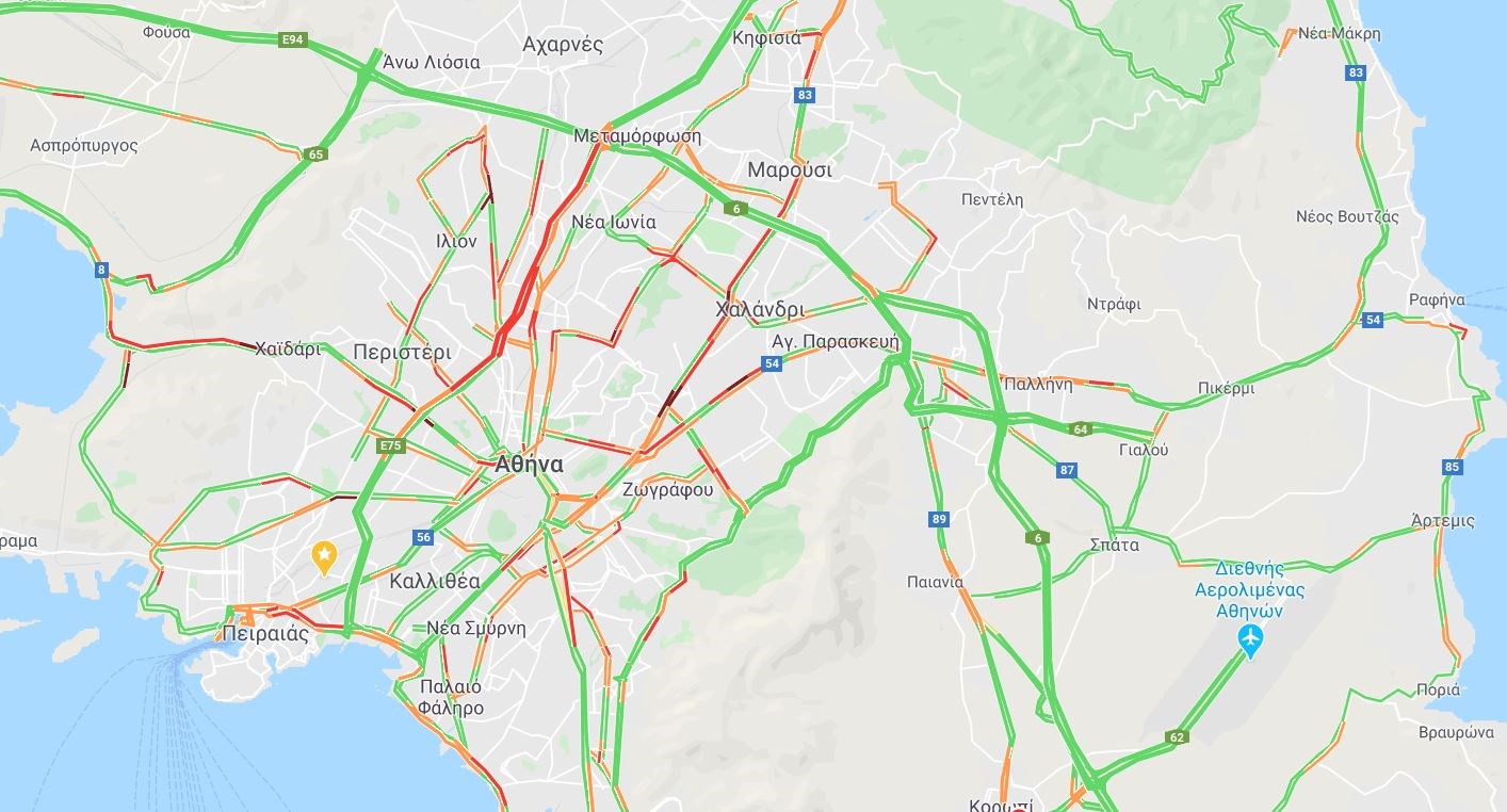 Σύμφωνα με την Τροχαία, αυξημένη κίνηση παρατηρείται στα εξής σημεία: στην άνοδο της Αθηνών Λαμίας από το Περιστέρι, στην κάθοδο της Αθηνών- Λαμίας από την Αττική Οδό, στην κάθοδο της Λ. Κηφισίας από το ύψος του Αμαρουσίου, στη Λ. Μεσογείων στο ρεύμα προς Αθήνα από την Αγία Παρασκευή, στη Βασ. Σοφίας και στα δύο ρεύματα και οι δρόμοι γύρω από το λιμάνι του Πειραιά.