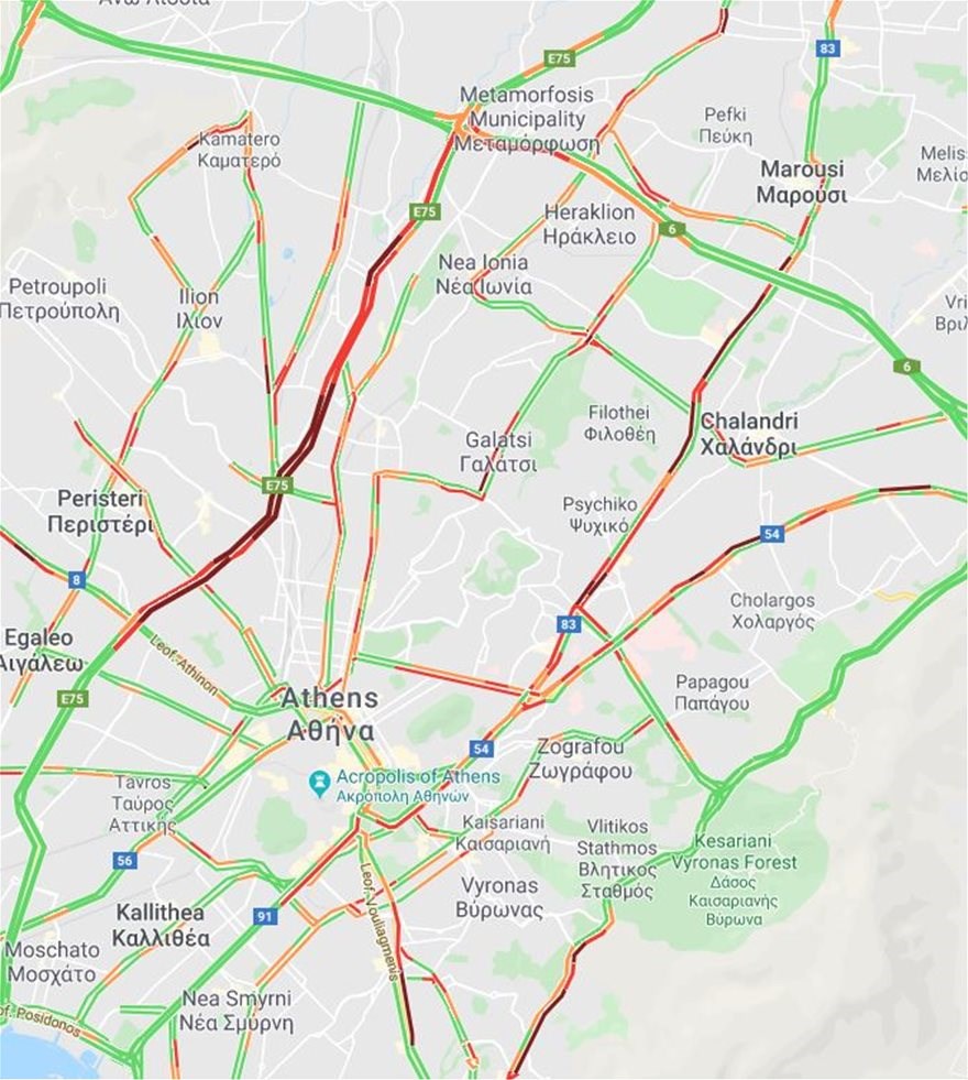 Σύμφωνα με την Τροχαία, αυξημένη κίνηση παρατηρείται στα εξής σημεία: στην άνοδο και στην κάθοδο της Λ. Κηφισού από το ύψος της Μεταμόρφωσης έως τη Λ. Αθηνών, στην κάθοδο τη Λ. Κηφισίας από Μαρούσι έως Αμπελόκηπους, στην άνοδο της Λ. Κηφισίας από το ύψος της Κατεχάκη μέχρι το “Υγεία” και στο ρεύμα της Λ. Μεσογείων προς Αθήνα από το Πεντάγωνο.