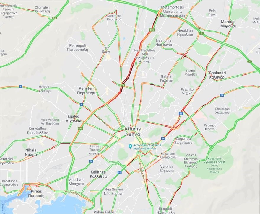 Σύμφωνα με την Τροχαία, αυξημένη κίνηση παρατηρείται στα εξής σημεία: στην άνοδο της Λ. Κηφισού από το ύψος του Περιστερίου έως την Αχαρνών, στην κάθοδο της Λ. Κηφισού από το ύψος της Αττικής Οδού έως ΚΤΕΛ, στην κάθοδο τη Λ. Κηφισίας από Μαρούσι έως Αμπελόκηπους, στην άνοδο της Λ. Κηφισίας από το ύψος της Εθνικής Αντιστάσεως, στο ρεύμα της Λ. Μεσογείων προς Αθήνα από το ύψος του Χολαργού, στη Λ. Βουλιαγμένης με κατεύθυνση την Αθήνα, στη Συγγρού το ρεύμα προς Αθήνα από το ύψος της Λαγουμιτζή και οι δρόμοι γύρω από το λιμάνι του Πειραιά.