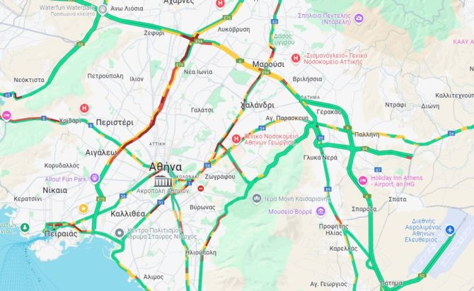 Προβλήματα καταγράφονται τμηματικά στην Λεωφόρο Κηφισίας και στα δύο ρεύματα αλλά και στους δρόμους γύρω από το λιμάνι του Πειραιά.