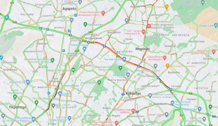 Καθυστερήσεις άνω των 30΄ προς Ελευσίνα από τον κόμβο Πεντέλης έως τον κόμβο Μεταμόρφωσης λόγω τροχαίου ατυχήματος μετά την έξοδο Ηρακλείου.