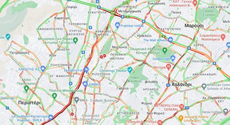 Συγκεκριμένα, μποτιλιάρισμα επικρατεί σε τμήματα της λεωφόρου Κηφισού και στα δύο ρεύματα. Επίσης σημειωτόν η κυκλοφορία και στην λεωφόρο Κηφισίας κυρίως στο ύψος του Ψυχικού.