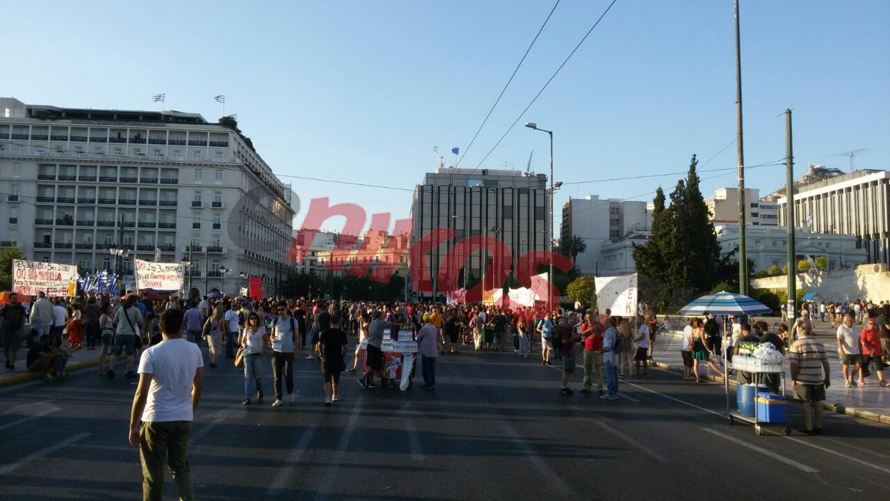 Σε εξέλιξη είναι το συλλαλητήριο στο Σύνταγμα, ενάντια στην ψήφιση των νέων μέτρων από τη Βουλή.