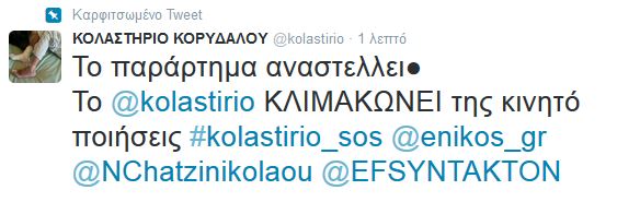 Στο μήνυμα τους στο Twitter, οι ασθενείς – κρατούμενοι αναφέρουν: «Το παράρτημα αναστέλλει. Το @kolastirio κλιμακώνει τις κινητοποιήσεις».