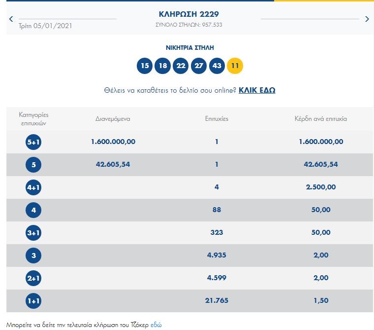 Κλήρωση του ΤΖΟΚΕΡ (5/1/2021): Ένας υπερτυχερός κέρδισε 1,6 εκατ. ευρώ Κυριάκος Γεωργόπουλος 22:06, Τρίτη 05 Ιανουαρίου 2021 κοινωνία Οι τυχεροί αριθμοί του ΤΖΟΚΕΡ: ΚΛΗΡΩΣΗ ΤΟΥ ΤΖΟΚΕΡ ΤΖΟΚΕΡ ΤΥΧΕΡΟΙ ΑΡΙΘΜΟΙ Μοιράσου το: σχολίασε κι εσύ (0 σχόλια) Ακολουθήστε το enikos.gr στο Google News και μάθετε πρώτοι όλες τις ειδήσεις Δείτε όλες τις τελευταίες ειδήσεις από την Ελλάδα και τον Κόσμο στο enikos.gr Ειδήσεις Ροή Ειδήσεων 2 ώρες πριν Τσιάρας: Καλούμε άμεσα τους εκπροσώπους των αγροτών σε ουσιαστικό διάλογο – Υπάρχουν περιθώρια, η κοινωνία περιμένει υπευθυνότητα 1 ώρα πριν Κυψέλη: Για πρώτη ημέρα βρισκόταν στο σχολείο η 16χρονη που επιτέθηκε με μαχαίρι στην 14χρονη – Τι αναφέρουν μαρτυρίες μαθητών για το επεισόδιο 2 ώρες πριν Λάρισα: Αναβλήθηκε για τον Οκτώβριο του 2026 η δίκη δύο αγροτών του μπλόκου της Νίκαιας 6 ώρες πριν Σίδνεϊ: Τα ονόματα των θυμάτων από την τρομοκρατική επίθεση – Η 10χρονη Ματίλντα και ο επιζών του Ολοκαυτώματος που έσωσε τη γυναίκα του 7 ώρες πριν Δείτε το συνέδριο «Ελληνικός Τουρισμός, Μια Εθνική Υπόθεση!» 2 ώρες πριν Τα 3 ζώδια που θα έχουν τύχη «βουνό» έως τις 21 Δεκεμβρίου – «Η ανατροπή που περιμένετε πλησιάζει» 6 ώρες πριν Μακροζωία: 55χρονος που ισχυρίζεται ότι βιολογικά είναι 20 ετών μοιράζεται μια απλή συμβουλή για υγιή εγκέφαλο 7 ώρες πριν Οι 8 φράσεις που δίνουν αμέσως την εντύπωση πως είστε δύσκολος άνθρωπος 9 ώρες πριν Κληρονόμησε 2,8 εκατ. ευρώ και φοβάται ότι οι άνδρες θα την πλησιάζουν για τα λεφτά – «Μήπως καλύτερα να το κρατήσω μυστικό;» 3 λεπτά πριν Γερμανία: Ολοκληρώθηκαν οι συνομιλίες ΗΠΑ-Ουκρανίας – Άγνωστο εάν οι Αμερικανοί διαπραγματευτές θα συμμετάσχουν στη συνάντηση με τους Ευρωπαίους ηγέτες 10 λεπτά πριν Τι απαντά το περιβάλλον του τραγουδιστή μετά την αποκάλυψη ότι «έρχονται» καταγγελίες για ασέλγεια 15 λεπτά πριν Μεσσηνία: Αγρότες απέκλεισαν τον αυτοκινητόδρομο στο ύψος της Θουρίας – Κλειστά και τα δύο ρεύματα 22 λεπτά πριν Ρεάλ Μαδρίτης: 180 λεπτά και 3 γκολ μακριά από το ιστορικό ρεκόρ του Κριστιάνο Ρονάλντο ο Μπαπέ 27 λεπτά πριν Σοκ στη Σίκινο: Ανθρώπινος σκελετός εντοπίστηκε από κυνηγούς – Ανήκει στη μία εκ των 2 τουριστριών που αγνοούνταν από το 2024 ENIKOS NETWORK Οι 9 κορυφαίες ιατρικές έρευνες για το 2025 που αλλάζουν το τοπίο της υγείας Ραντεβού από σήμερα για ιατρικές εξετάσεις με ένα κλικ μέσω του MyHealth app ΕΛΣΤΑΤ: Μείωση 6,4% στον αριθμό των κενών θέσεων εργασίας στο σύνολο της οικονομίας κατά το γ’ τρίμηνο 2025 – Δείτε αναλυτι... IRIS: Τι αλλάζει μετά την Πρωτοχρονιά στις συναλλαγές και ποιες θα είναι «επικίνδυνες» Σύγχρονος Νοστράδαμος: Προειδοποιεί για «μεγάλο γεγονός» τους επόμενους μήνες που θα συγκλονίσει τη Βρετανία και τον κόσμο Τεστ παρατηρητικότητας: Μπορείτε να βρείτε τις 3 διαφορές στις εικόνες με έναν πιγκουίνο σε 14 δευτερόλεπτα περισσότερα 17:22 , Δευτέρα 15 Δεκεμβρίου 2025 Μεσσηνία: Αγρότες απέκλεισαν τον αυτοκινητόδρομο στο ύψος της Θουρίας – Κλειστά και τα δύο ρεύματα Από σήμερα το πρωί, αγρότες από διάφορες περιοχές της Μεσσηνίας ζέσταναν τις μηχανές των τρακτ... 17:10 , Δευτέρα 15 Δεκεμβρίου 2025 Σοκ στη Σίκινο: Ανθρώπινος σκελετός εντοπίστηκε από κυνηγούς – Ανήκει στη μία εκ των 2 τουριστριών που αγνοούνταν από το 2024 Ανθρώπινος σκελετός σε ιδιαίτερα δύσβατη και θαμνώδη περιοχή, εντοπίστηκε στη Σίκινο. Όπως μετ... 16:33 , Δευτέρα 15 Δεκεμβρίου 2025 Πέθανε ο Αλμπέρτο Εσκενάζυ Πέθανε ο ηθοποιός Αλμπέρτο Εσκενάζυ σε ηλικία 73 ετών. Σύμ
