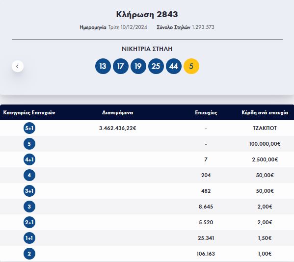 Έγινε η κλήρωση με αριθμό 2843 του ΤΖΟΚΕΡ το βράδυ της Τρίτης (10/12).