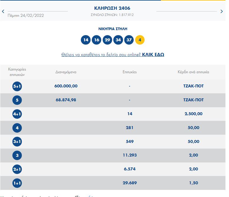 Κλήρωση ΤΖΟΚΕΡ (24/2/2022): Αυτοί είναι οι τυχεροί αριθμοί Κυριάκος Γεωργόπουλος 22:07, Πέμπτη 24 Φεβρουαρίου 2022 κοινωνία Οι τυχεροί αριθμοί της αποψινής κλήρωσης του ΤΖΟΚΕΡ: ΚΛΗΡΩΣΗ ΤΖΟΚΕΡ ΤΥΧΕΡΟΙ ΑΡΙΘΜΟΙ Μοιράσου το: Διαδηλώσεις σε ευρωπαϊκές χώρες για τη ρωσική εισβολή στην Ουκρανία – “Σταματήστε αυτή την τρέλα” Μεσσηνία: Προφυλακιστέοι οι τρεις δράστες της δολοφονίας του 73χρονου – “Δεν ήταν προμελετημένο” είπε ο 39χρονος Ολυμπιακός – Αταλάντα 0-3 (ΤΕΛΙΚΟ) σχολίασε κι εσύ (0 σχόλια) Ακολουθήστε το enikos.gr στο Google News και μάθετε πρώτοι όλες τις ειδήσεις Δείτε όλες τις τελευταίες ειδήσεις από την Ελλάδα και τον Κόσμο στο enikos.gr Ειδήσεις Ροή Ειδήσεων 7 ώρες πριν Παράνομες επιδοτήσεις 1,7 εκατ. ευρώ στον ΟΠΕΚΕΠΕ: Πώς έστησε την κομπίνα η εγκληματική οργάνωση – Οι ρόλοι, οι βαριές κατηγορίες και οι… κουμπαριές 7 ώρες πριν Αγρότες: Εν αναμονή της πανελλαδικής σύσκεψης στη Νίκαια το Σάββατο – Η διαμαρτυρία με σανό στη Λάρισα και η κινητοποίηση στο λιμάνι της Θεσσαλονίκης 7 ώρες πριν Η απόφαση της ΕΕ να παγώσει επ’ αόριστον τα ρωσικά περιουσιακά στοιχεία και το μυστικό πίσω από τις αντιδράσεις στο να γίνουν δάνειο στην Ουκρανία 7 ώρες πριν Φοινικούντα: «Όταν τελειώσει αυτό, θα δεις τι έχεις να πάθεις» έλεγε ο ανιψιός στην ξαδέλφη του πριν συλληφθεί – Το τρίτο πρόσωπο με την πολυτελή ζωή και τα κότερα 7 ώρες πριν Μπαρτσελόνα – Ολυμπιακός 98-85: Παραδόθηκε… άνευ όρων 10 λεπτά πριν Καρκίνος: Ογκολόγος αποκαλύπτει 4 τρόπους για να μειώσετε τον κίνδυνο και να ζήσετε περισσότερο 40 λεπτά πριν Τα ζώδια σήμερα, Σάββατο 13 Δεκεμβρίου: Λέοντες, νιώθετε πιο τολμηροί 7 ώρες πριν Πέτρινη σαρκοφάγος αναδύθηκε έπειτα από υποχώρηση υδάτων σε μεγάλο φράγμα – Η δύσκολη επιχείρηση μεταφοράς και η άγνωστη κληρονομιά 8 ώρες πριν Ύπνος: Πώς η σωστή διαρρύθμιση των επίπλων στο υπνοδωμάτιο μπορεί να σας βοηθήσει να κοιμάστε καλά 2 λεπτά πριν Ρουμανία: Χιλιάδες διαδηλωτές βγήκαν στους δρόμους για να διαμαρτυρηθούν κατά της διαφθοράς στο δικαστικό σύστημα 10 λεπτά πριν Καρκίνος: Ογκολόγος αποκαλύπτει 4 τρόπους για να μειώσετε τον κίνδυνο και να ζήσετε περισσότερο 18 λεπτά πριν Σαν σήμερα 13 Δεκεμβρίου: Τα σημαντικότερα γεγονότα της ημέρας 23 λεπτά πριν Οι οικονομικές εφημερίδες 13/12/2025 27 λεπτά πριν Οι αθλητικές εφημερίδες 13/12/2025 ENIKOS NETWORK 6 σοβαροί λόγοι που πρέπει να βάλετε παπλωματοθήκη απόψε πριν κοιμηθείτε ΣΦΕΕ: Ευρωπαϊκή φαρμακευτική μεταρρύθμιση- Σημαντικό βήμα αλλά όχι αρκετό για την ενίσχυση της καινοτομίας ΑΑΔΕ: Νέα σημαντική μείωση του κενού ΦΠΑ στην Ελλάδα – Υποχώρησε 61% σε έξι χρόνια Ανοιχτή επιστολή παραγωγικών φορέων για τις αγροτικές κινητοποιήσεις – Τι ζητούν Σύγχρονος Νοστράδαμος: Προειδοποιεί για «μεγάλο γεγονός» τους επόμενους μήνες που θα συγκλονίσει τη Βρετανία και τον κόσμο Τεστ παρατηρητικότητας: Μπορείτε να βρείτε τις 3 διαφορές στις εικόνες με έναν πιγκουίνο σε 14 δευτερόλεπτα περισσότερα 05:53 , Σάββατο 13 Δεκεμβρίου 2025 Σαν σήμερα 13 Δεκεμβρίου: Τα σημαντικότερα γεγονότα της ημέρας Διαβάστε τα σημαντικότερα γεγονότα που έγιναν σαν σήμερα στην Ελλάδα και τον κόσμο. Γεγονότα 1... 05:22 , Σάββατο 13 Δεκεμβρίου 2025 Εφημερεύοντα φαρμακεία σε Αθήνα και Θεσσαλονίκη (13/12) Μάθετε ποια φαρμακεία εφημερεύουν σε Αθήνα και Θεσσαλονίκη. Βρείτε εύκολα και γρήγορα τα πλησι... 05:05 , Σάββατο 13 Δεκεμβρίου 2025 Ηράκλειο: Σκύλος έγινε «ασπίδα» για να σώσει το αφεντικό της από τροχαίο – «Αν