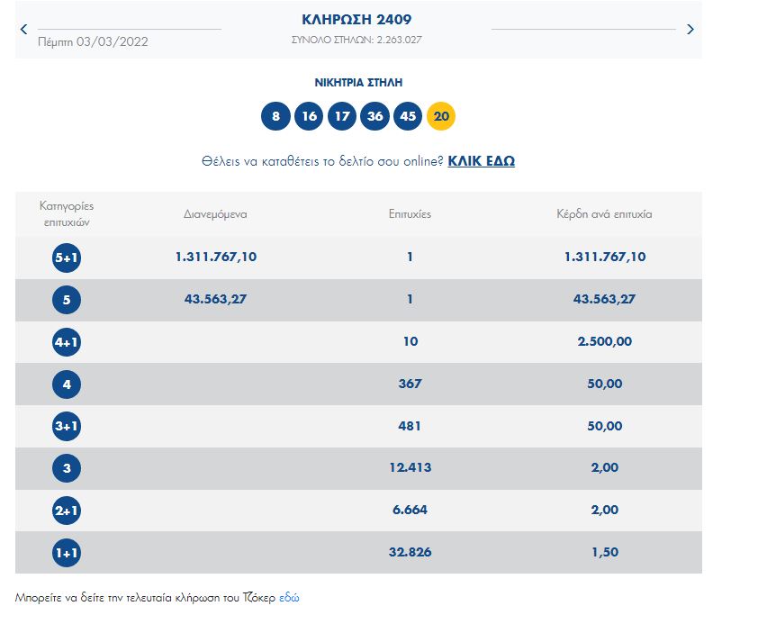 Κλήρωση ΤΖΟΚΕΡ (3/3/2022): Αυτοί είναι οι τυχεροί αριθμοί Κυριάκος Γεωργόπουλος 22:08, Πέμπτη 03 Μαρτίου 2022 κοινωνία Οι τυχεροί αριθμοί της αποψινής κλήρωσης του ΤΖΟΚΕΡ: Η ΚΛΗΡΩΣΗ ΤΟΥ ΤΖΟΚΕΡ ΤΖΟΚΕΡ Μοιράσου το: Βρετανία: Σούπερ μάρκετ κατεβάζουν από τα ράφια τους τις ρωσικές βότκες Δολοφονία στην Ανδραβίδα: “Πολύ επικίνδυνη προσωπικότητα για το κοινωνικό σύνολο ο δράστης” – Τα νέα στοιχεία ΚΙΝΑΛ: Ο Μητσοτάκης ακολουθεί τα χνάρια του Τσίπρα και δεν πιστεύει στην εθνική συνεννόηση σχολίασε κι εσύ (0 σχόλια) Ακολουθήστε το enikos.gr στο Google News και μάθετε πρώτοι όλες τις ειδήσεις Δείτε όλες τις τελευταίες ειδήσεις από την Ελλάδα και τον Κόσμο στο enikos.gr Ειδήσεις Ροή Ειδήσεων 1 ώρα πριν Αυξάνουν την πίεση προς την κυβέρνηση οι αγρότες: Κλείνουν παρακαμπτήριους και ανοίγουν διόδια – Τι θα γίνει τις γιορτές 16 λεπτά πριν ΟΠΕΚΕΠΕ: Προφυλακιστέος ο φερόμενος αρχηγός και ο λογιστής της εγκληματικής οργάνωσης 1 ώρα πριν Φοινικούντα: Το Σάββατο απολογείται ο 30χρονος γιος γνωστού επιχειρηματία της Πλάκας που παραδόθηκε – Όσα είπε στους αστυνομικούς και ο ρόλος του στο έγκλημα 57 λεπτά πριν Μπορεί ο Μαδούρο να αντέξει τον αποκλεισμό του Τραμπ; Τι θα χρειαστεί η Ουάσινγκτον για να τον ανατρέψει 2 ώρες πριν Πρίγκιπας Ουίλιαμ – Κέιτ: Η νέα οικογενειακή φωτογραφία για τις Χριστουγεννιάτικες κάρτες του 2025 2 ώρες πριν Ύπνος: Η απλή βραδινή ρουτίνα για να προστατεύσετε τα μαλλιά σας από το κρύο κατά τη διάρκεια του χειμώνα 3 ώρες πριν Manifesting: Πώς να συναντήσετε τον σύντροφο της ζωής σας, ανάλογα με τον μήνα γέννησής σας 2 ημέρες πριν 20 χρόνια τα Χριστούγεννα ξεκινούν στα Public με μεγάλη ποικιλία σε δώρα! 1 ώρα πριν Αρχαιολόγοι ανακάλυψαν ρωμαϊκά τεχνουργήματα από μια πόλη που δεν υπήρξε ποτέ – Τα τρία εντυπωσιακά κτίρια και ο αμφορέας με τις… σαρδέλες 16 λεπτά πριν ΟΠΕΚΕΠΕ: Προφυλακιστέος ο φερόμενος αρχηγός και ο λογιστής της εγκληματικής οργάνωσης 26 λεπτά πριν Αθηνά Μαξίμου: Η τρυφερή ανάρτηση για τα γενέθλια του Αιμίλιου Χειλάκη – «Είναι η εκλεκτική συγγένειά μου, η επιλογή και η ευθύνη μου» 42 λεπτά πριν Παναθηναϊκός – Χάποελ Τελ Αβίβ 93-82: Με… φόρα από την Κωνσταντινούπολη 57 λεπτά πριν Μπορεί ο Μαδούρο να αντέξει τον αποκλεισμό του Τραμπ; Τι θα χρειαστεί η Ουάσινγκτον για να τον ανατρέψει 1 ώρα πριν Αρχαιολόγοι ανακάλυψαν ρωμαϊκά τεχνουργήματα από μια πόλη που δεν υπήρξε ποτέ – Τα τρία εντυπωσιακά κτίρια και ο αμφορέας με τις… σαρδέλες ENIKOS NETWORK Σε περίοδο αυξημένης δραστηριότητας η γρίπη στην Ελλάδα-Μέτρα προστασίας από τον ΕΟΔΥ Σκέφτεστε συνέχεια συζητήσεις που έχετε κάνει; Τι σημαίνει αυτό, σύμφωνα με ειδικό Στεγαστικό: Τι λέει η ΠΟΜΙΔΑ για τα νέα μέτρα που ανακοίνωσε ο Κυριάκος Μητσοτάκης Λαγκάρντ: Αισιόδοξη για την ανάπτυξη της Ευρωζώνης, αβέβαιη για τον πληθωρισμό Χαρτογραφώντας το «σημείο χωρίς επιστροφή»: Για πρώτη φορά αποκαλύπτεται με λεπτομέρεια το ακανθώδες όριο της ατμόσφαιρας τ... Η Google καταργεί τη λειτουργία «dark web report» – Πώς θα μπορούν οι χρήστες να διαγράφουν τα δεδομένα τους περισσότερα 23:45 , Πέμπτη 18 Δεκεμβρίου 2025 ΟΠΕΚΕΠΕ: Προφυλακιστέος ο φερόμενος αρχηγός και ο λογιστής της εγκληματικής οργάνωσης Στη φυλακή οδηγούνται, μετά την απολογία τους, ο «γαλάζιος» αγροτοσυνδικαλιστής, φερόμενος ως ... 22:46 , Πέμπτη 18 Δεκεμβρίου 2025 Φοινικούντα: Το Σάββατο απολογείται ο 30χρονος γιος γνωστού επιχειρηματία της Πλάκας που παραδόθηκε – Όσα είπε στους αστυνομ