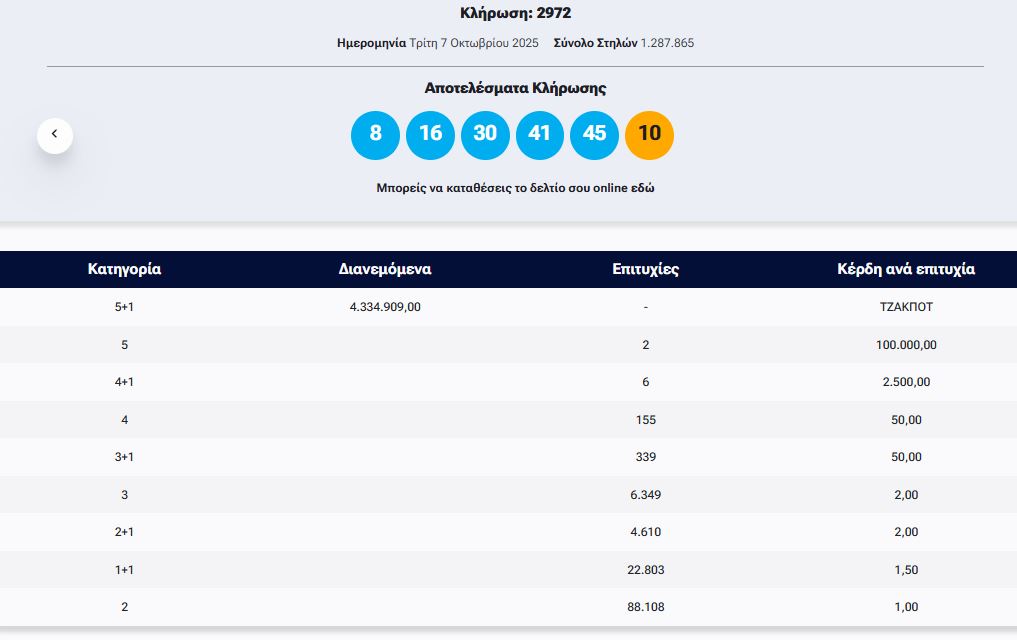 Κλήρωση ΤΖΟΚΕΡ 7/10/2025: Αυτοί είναι οι τυχεροί αριθμοί Enikos Newsroom 22:07, Τρίτη 07 Οκτωβρίου 2025 κοινωνία Έγινε η κλήρωση με αριθμό 2972 του ΤΖΟΚΕΡ το βράδυ της Τρίτης (7/10). 18+ επίγειο, 21+ ψηφιακό | Αρμόδιος Ρυθμιστής ΕΕΕΠ | Κίνδυνος εθισμού & απώλειας περιουσίας | ΓΡΑΜΜΗ ΣΤΗΡΙΞΗΣ 1114 | Παίξε Υπεύθυνα. ΤΖΟΚΕΡ Μοιράσου το: Διπλή δολοφονία στη Μεσσηνία: Στο μικροσκόπιο η διαδρομή που ακολούθησε ο δράστης μετά το έγκλημα – «Κλειδί» η κατάθεση του ανιψιού του ιδιοκτήτη ΑΠΕΥΘΕΙΑΣ- Μητσοτάκης στην Γενική Συνέλευση του ΣΕΒ: «Η συλλογική ανάπτυξη μετατρέπεται σε ευημερία για τους πολλούς» Η οικογένεια μιας κοπέλας απήγαγε και ανάγκασε 18χρονο να παίξει «ρωσική ρουλέτα» για να τη χωρίσει σχολίασε κι εσύ (0 σχόλια) Ακολουθήστε το enikos.gr στο Google News και μάθετε πρώτοι όλες τις ειδήσεις Δείτε όλες τις τελευταίες ειδήσεις από την Ελλάδα και τον Κόσμο στο enikos.gr Ειδήσεις Ροή Ειδήσεων 6 ώρες πριν Τραγωδία στη Γλυφάδα: Νεκρή ανασύρθηκε μία γυναίκα – Παρασύρθηκε από ορμητικά νερά και εγκλωβίστηκε κάτω από αυτοκίνητο 10 ώρες πριν LIVE-Η κακοκαιρία σφυροκοπά την Αττική: Πλημμυρισμένοι δρόμοι, φουσκωμένα ρέματα – Πού υπάρχουν κυκλοφοριακές ρυθμίσεις – ΦΩΤΟ και ΒΙΝΤΕΟ αναγνωστών 4 ώρες πριν Νταβός: Το πλαίσιο συμφωνίας Τραμπ-ΝΑΤΟ για τη Γροιλανδία, τα σκοτεινά σημεία του και τα παράπονα του προέδρου των ΗΠΑ 5 ώρες πριν Τραγωδία στην Αρκαδία: O άτυχος λιμενικός πέρασε 2-3 φορές από το σημείο για να ελέγξει τα σκάφη – «Ήρθε δεύτερο κύμα και τους πέταξε όλους κάτω» 6 ώρες πριν Δημοσκόπηση Pulse: Η διαφορά ΝΔ-ΠΑΣΟΚ – Από πού αντλούν ψήφους Καρυστιανού, Τσίπρας και Σαμαράς 33 λεπτά πριν Τα ζώδια σήμερα, Πέμπτη 22 Ιανουαρίου 2026: Ταύροι, πετάξτε από πάνω σας ό,τι σας βαραίνει 5 ώρες πριν Αρχαίος ομαδικός τάφος αποκαλύπτει κάτι συγκλονιστικό – Πώς οι άνθρωποι αντιμετώπισαν την πρώτη πανδημία της ιστορίας 7 ώρες πριν Οι άνθρωποι που έχουν γεννηθεί αυτούς τους 4 μήνες, «διψούν» για αλλαγές – «Το απρόβλεπτο σας γεμίζει ενέργεια» 6 ώρες πριν Ύπνος: Αυτό το κοινό όνειρο ίσως αποτελεί προειδοποίηση για την υγεία σας – Τι είναι οι υπναγωγικοί σπασμοί 13 λεπτά πριν Κακοκαιρία: Δύο άνδρες έσωσαν μία άλλη γυναίκα στη Γλυφάδα κοντά στο σημείο της τραγωδίας – Δείτε το σοκαριστικό βίντεο 33 λεπτά πριν Τα ζώδια σήμερα, Πέμπτη 22 Ιανουαρίου 2026: Ταύροι, πετάξτε από πάνω σας ό,τι σας βαραίνει 42 λεπτά πριν «Ψεύδεται»: Οι Γροιλανδοί αντιμετωπίζουν με δυσπιστία την πρόταση Τραμπ 51 λεπτά πριν Κωνσταντοπούλου: Υποσχόμαστε ότι πολύ σύντομα ο αγροτικός κόσμος θα ανασάνει 1 ώρα πριν Ράφα Μπενίτεθ για το Φερεντσβάρος – Παναθηναϊκός: «Έχουμε εμπιστοσύνη στην ομάδα» ENIKOS NETWORK Η καλύτερη στάση ύπνου για αποφύγετε την άνοια – Τα κακά νέα για όσους κοιμούνται ανάσκελα ΠΙΣ: Παραιτήθηκε ο Αθανάσιος Εξαδάκτυλος- Νέος Πρόεδρος ο Κωνσταντίνος Κουτσόπουλος Πώς θα αυξήσουν τη σύνταξη 1.500.000 ελεύθεροι επαγγελματίες ΔΥΠΑ: Συνολικά 915.889 οι εγγεγραμμένοι άνεργοι για τον Δεκέμβριο – Τα τελευταία στοιχεία Ο Google Assistant θα παραμείνει λίγο περισσότερο για ορισμένους χρήστες Android Τεστ προσωπικότητας: Το βάζο που θα επιλέξετε αποκαλύπτει πώς λύνετε προβλήματα στη ζωή σας περισσότερα 03:20 , Πέμπτη 22 Ιανουαρίου 2026 Κακοκαιρία: Δύο άνδρες έσωσαν μία άλλη γυναίκα στη Γλυφάδα κοντά στο σημείο της τραγωδίας – Δείτε το σοκαριστικό βίντεο Άλλο ένα αδιανόητο περιστατικό συνέβη χθες στην Άνω Γλυφάδα, κοντά στο σημείο που μια 56χρονη ... 00:07 , Πέμπτη 22 Ιανου