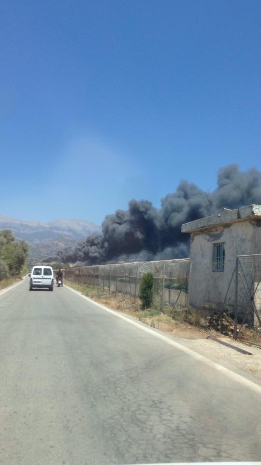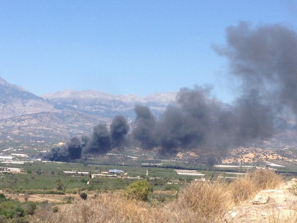 Μεγάλη πυρκαγιά ξέσπασε σήμερα το μεσημέρι σε συσκευαστήριο αγροτικών προϊόντων στο Τυμπάκι της Μεσαράς Ηρακλείου.