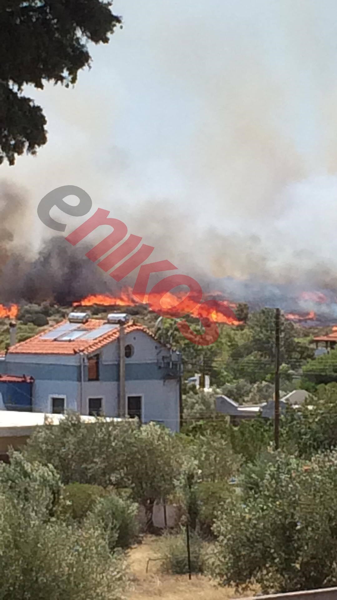 Η νέα φωτιά που ξέσπασε στη λεωφόρο Αναβύσσου καίει κοντά σε κατοικημένη περιοχή, όπως φαίνεται στις φωτογραφίες που έστειλαν αναγνώστες του enikos.gr.