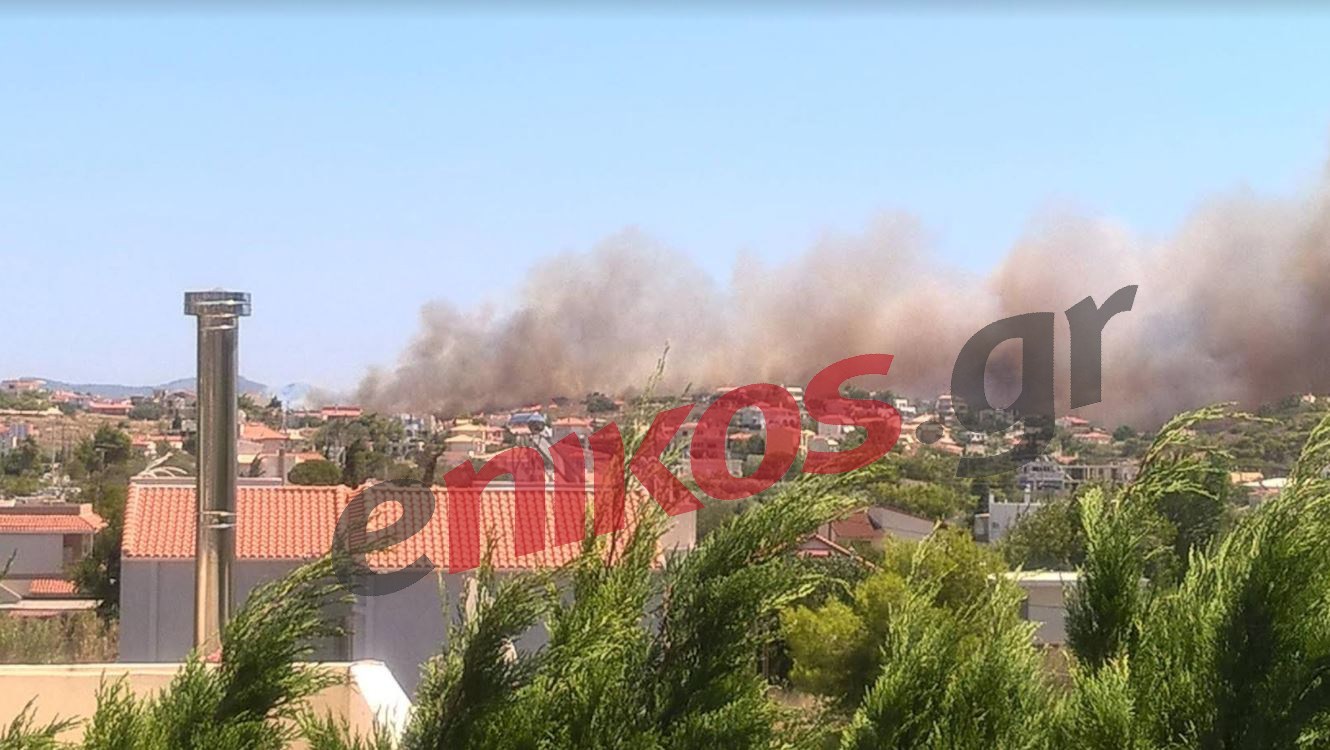 Η νέα φωτιά που ξέσπασε στη λεωφόρο Αναβύσσου καίει κοντά σε κατοικημένη περιοχή, όπως φαίνεται στις φωτογραφίες που έστειλαν αναγνώστες του enikos.gr.