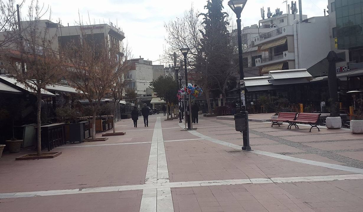 Ο κόσμος δεν κυκλοφορεί στην πλατεία και την ευρύτερη περιοχή, ενώ και οι περισσότερες καφετέριες δεν έχουν ανοίξει.