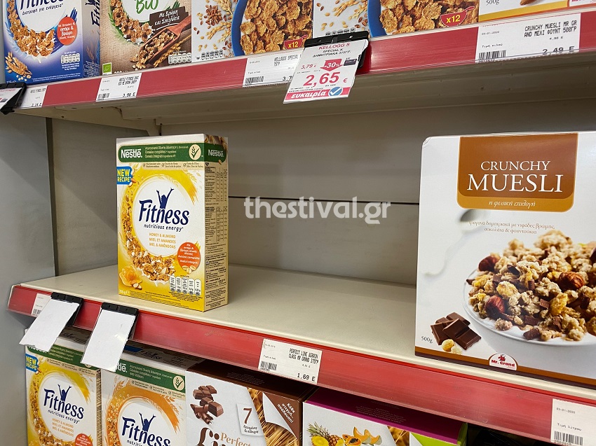 «Από τις 13:00 η κίνηση του καταστήματος είναι αυξημένη κατά 150% σε σχέση με το αντίστοιχο χρονικό διάστημα της περσινής ημέρας» δήλωσε στο thestival, διευθυντής καταστήματος γνωστής αλυσίδας σούπερ μάρκετ στο κέντρο της Θεσσαλονίκης. «Υπάρχουν αποθέματα όμως αν συνεχιστεί αυτό που παρατηρείται τις τελευταίες ώρες, τότε σύντομα όλα τα ράφια θα είναι άδεια» ανέφερε ο διευθυντής.«Προμηθεύτηκα μεγάλη ποσότητα κατεψυγμένων προϊόντων για μα μην ξεμείνω. Έχω καταψύκτη μεγάλο και θα τον γεμίσω. Τι θα κάνω αν αδειάσουν τα σούπερ μάρκετ. Φροντίζω για να έχω» δήλωσε στο thestival, 65χρονη συνταξιούχος που γέμισε μέχρι πάνω με φαγώσιμα το καρότσι του σούπερ μάρκετ.Να σημειωθεί πάντως πως όλοι οι αρμόδιοι φορείς συνιστούν προς τους πολίτες ψυχραιμία. Ο πανικός είναι πάντοτε κακός σύμβουλος και σε τέτοιες περιπτώσεις μόνο προβλήματα μπορεί να προκαλέσει.Το thestival επικοινώνησε με τις κεντρικές διευθύνσεις δυο μεγάλων αλυσίδων σούπερ μάρκετ. Αυτό που τόνισαν τα στελέχη των δυο ομίλων είναι ότι δεν πρόκειται να υπάρξει άμεσο πρόβλημα επάρκειας και κατά συνέπεια δεν συντρέχουν λόγοι ανησυχίας. «Αυτό που θα γίνει τις επόμενες ημέρες είναι να στέλνουμε αυξημένες παραγγελίες στα καταστήματά μας. Μόλις αδειάζουν τα ράφια οι υπάλληλοι μας θα τα ξαναγεμίζουν» σημείωσε ο γενικός διευθυντής μιας από τις μεγαλύτερες αλυσίδες σούπερ μάρκετ της Θεσσαλονίκης.