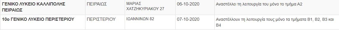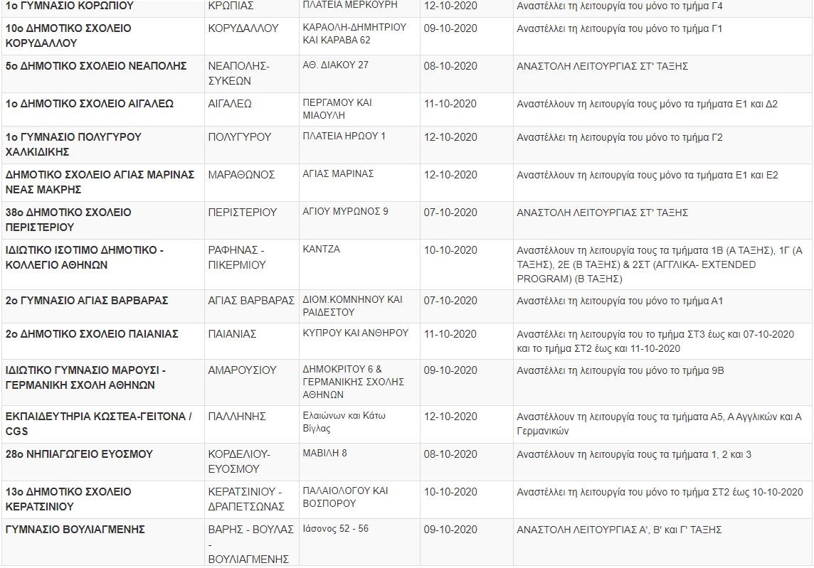 Συνολικά 145 σχολεία ή τμήματα θα παραμείνουν κλειστά σήμερα 2 Οκτωβρίου, εξαιτίας εμφάνισης κρουσμάτων κορονοϊού. Η λίστα με τα σχολεία ή τμήματα που είναι κλειστά ανανεώνεται συνεχώς από το υπουργείο Παιδείας.